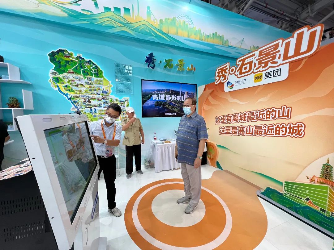 在区委宣传部统筹下,石景山区文化和旅游局组织参加“京西福地双奥区城市复兴新地标”石景山文旅服务专题展,围绕“秀·石景山”文旅品牌打造,现场设置石景山异形发光文旅地图,播放石景山文旅品牌形象片“如此城”、主题曲 mv“秀兮秀西”,发布“山水漫步君”“潮玩探秘者”“时光奇遇族”“百变文艺咖”主题线路,设置“秀·石景山”自助拍照馆,开展首钢园骑行线路体验活动,切实提升服贸会参展观展游历感。