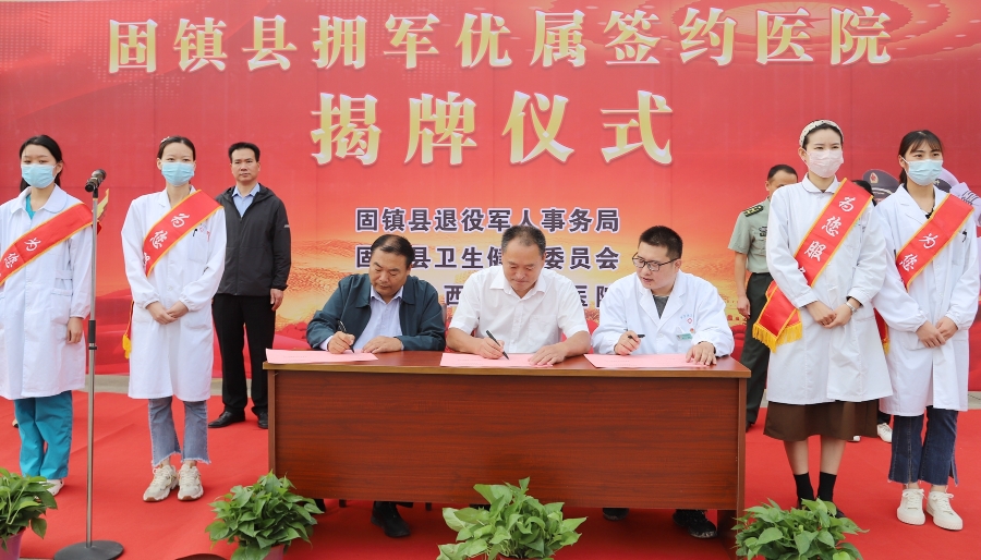 9月27日上午,固镇县退役军人事务局与固镇中西医结合医院举行“拥军优属签约医院”揭牌仪式,汇聚关心关爱退役军人的强大合力,让尊重退役军人、尊崇军人职业成为时代新风尚。固镇县退役军人事务局局长陈学平,固镇县卫健委主任单明,固镇县人武部副部长冯志坚,固镇县退役军人事务局副局长邢燕、单民主,固镇中西医结合医院领导蔡锋、蔡泽汉及医院医护人员代表参加仪式。固镇县卫健委副主任申娜主持仪式。