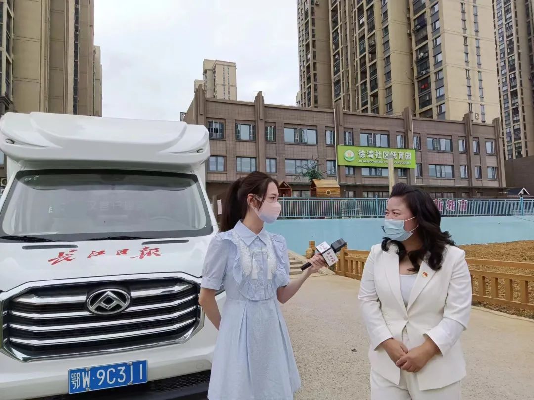 △徐湾社区书记徐欢接受长江日报主播采访。