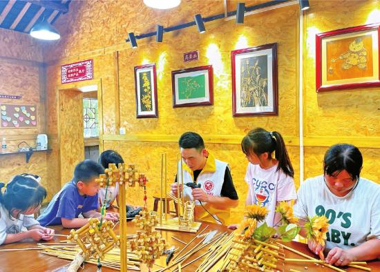 回龙镇骑胜村谢家大院文明实践点开展高粱秆手工艺品制作活动。