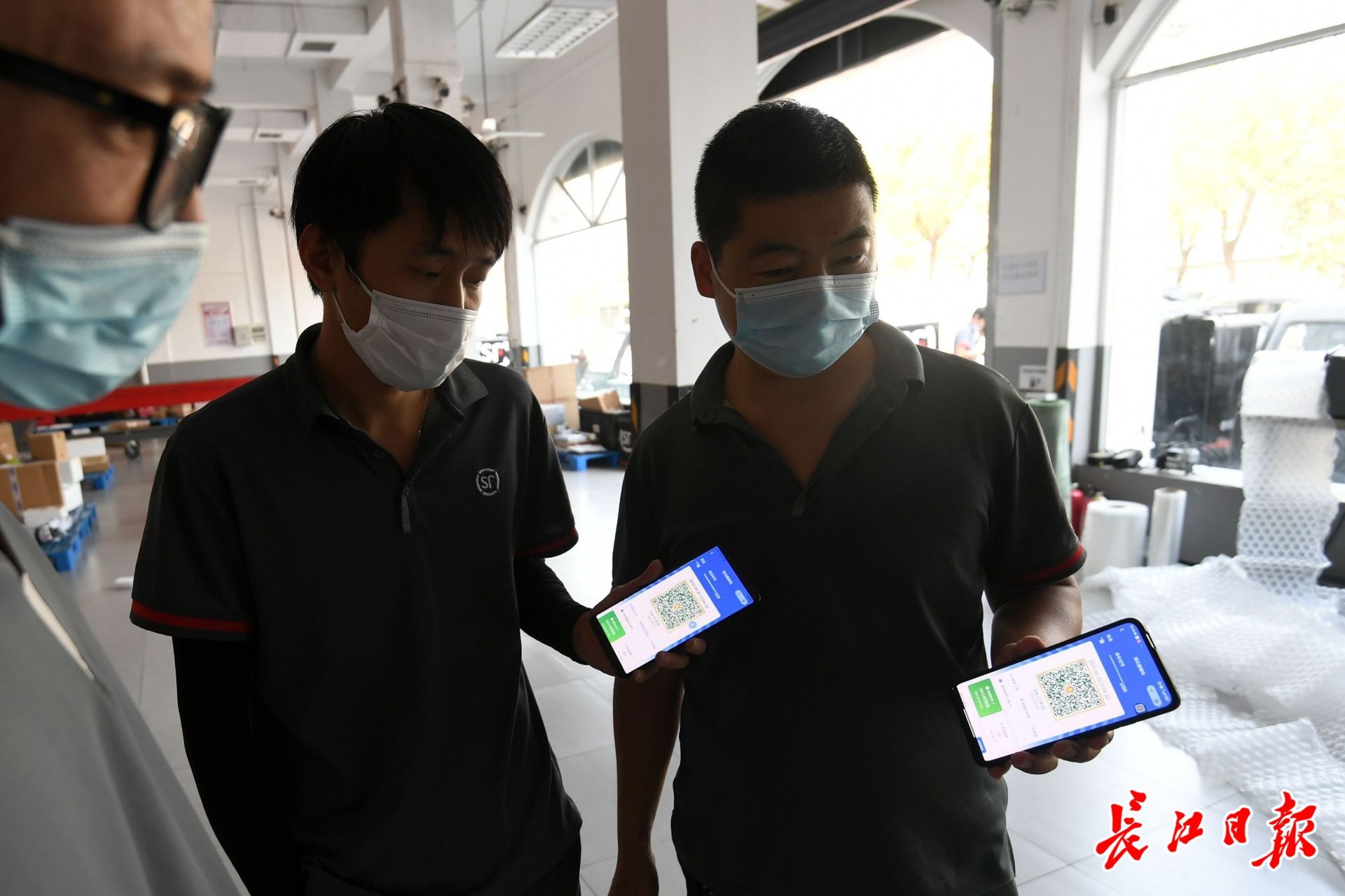 10月6日上午,记者来到位于东西湖区金南一路的顺丰速运卧龙网点,20余名准备进入网点的快递小哥,依次打开手机健康码,确认核酸检测阴性后方能进入网点内。网点内,每一名工作人员都规范地佩戴口罩,遇到有市民进入网点没有佩戴口罩的情况,他们会主动提醒,要求戴好口罩并查验健康码方能办理业务。
