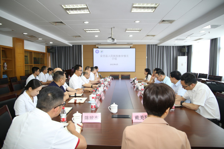 傅志敏介绍了学校建设发展情况,并代表学校向湖州市卫健委、安吉县卫健局对杭州医学院长期以来的支持表示衷心感谢。他指出,杭州医学院作为一所面向基层培养高水平应用型医学人才的医科大学,学校历来高度重视与地方的对接合作,与安吉县在人才培养、毕业生就业、科技合作等方面有着良好的合作基础。当前正处在2022届毕业生求职就业的关键时刻,本次走访是学校贯彻教育部发起的“访企拓岗促就业”专项行动的具体举措,希望通过与市县两级卫健行政管理部门和医院的进一步交流,推动校院地三方通力合作,建立实践实习基地等长效机制,实现学校毕业生更加充分、更高质量就业。