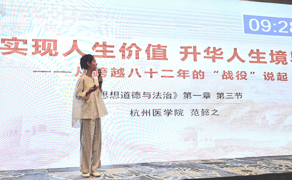 日前,杭州医学院马克思主义学院年轻教师范懿之在浙江省本专科高校《思想道德与法治》课教学比赛中荣获第一名。此次她的对手是来自浙江工业大学、浙江工商大学、温州医科大学、浙江中医药大学、杭州师范大学等90多所高校的110多名思政基础课教师。