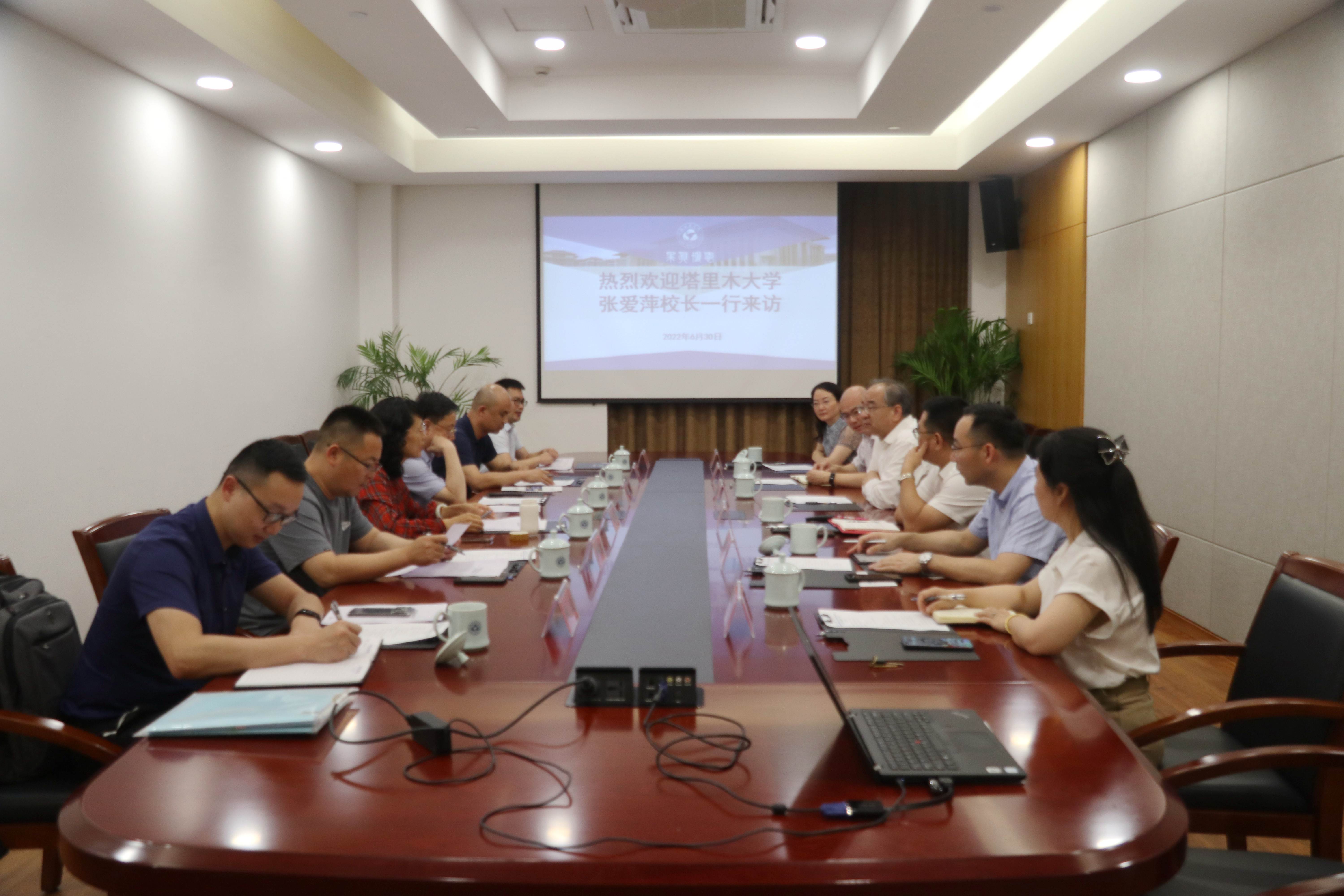 6月30日下午,新疆塔里木大学党委副书记、校长张爱萍,党委常委、副校长赵峰华一行来我校访问,就推进对口支援工作等有关事宜进行交流,我校党委书记吕建新,党委委员、副校长傅志敏会见了客人。