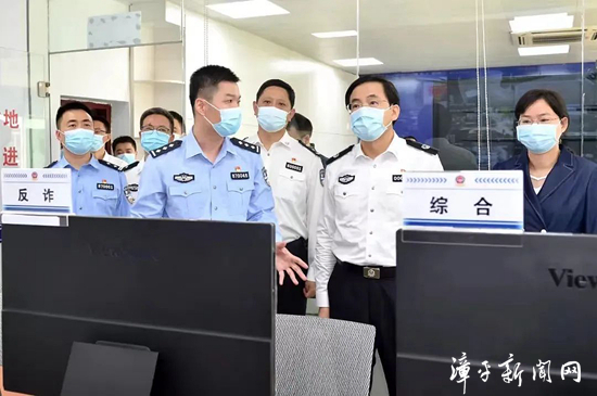 在漳平市公安局西园派出所,黄海昆实地察看了基层派出所“两队一室”警务运行模式改革情况。