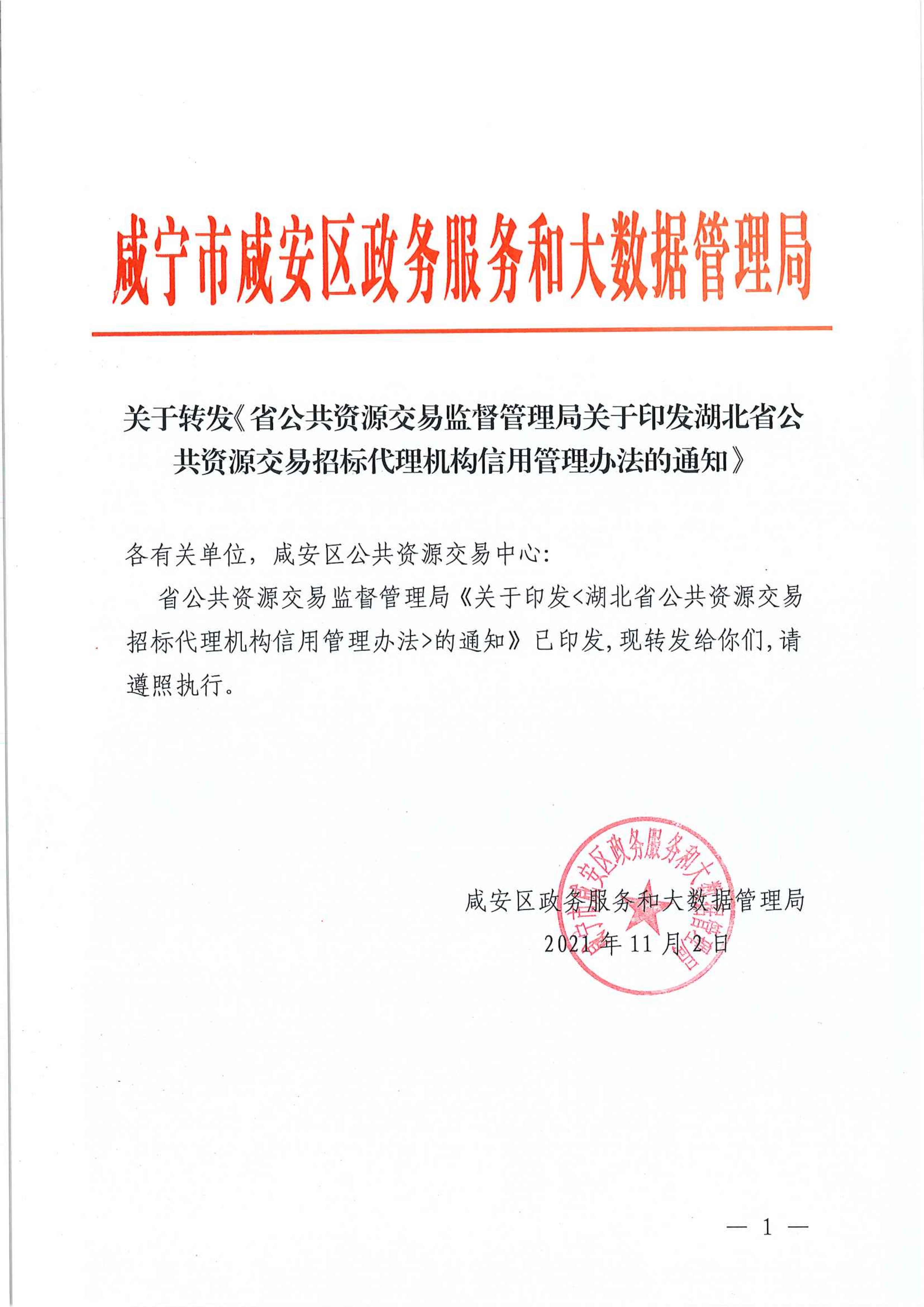 关于转发《省公共资源交易监督管理局关于印发湖北省公共资源交易招标代理机构信用管理办法的通知》