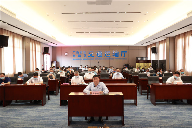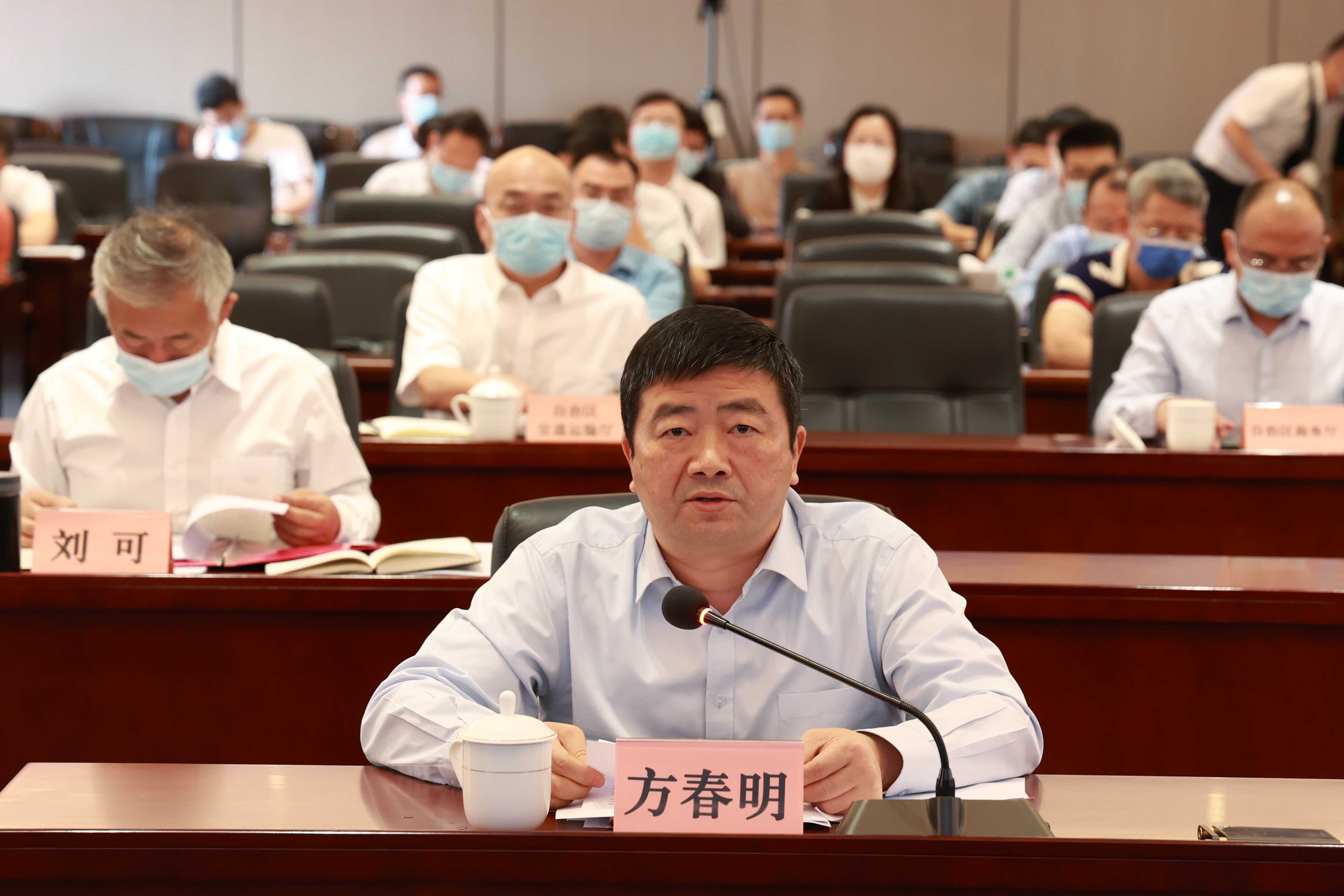 广西壮族自治区副主席方春明在广西分会场汇报广西物流保通保畅工作经验做法。广西壮族自治区交通运输厅厅长刘可、总工程师陈津维在广西分会场参加会议。
