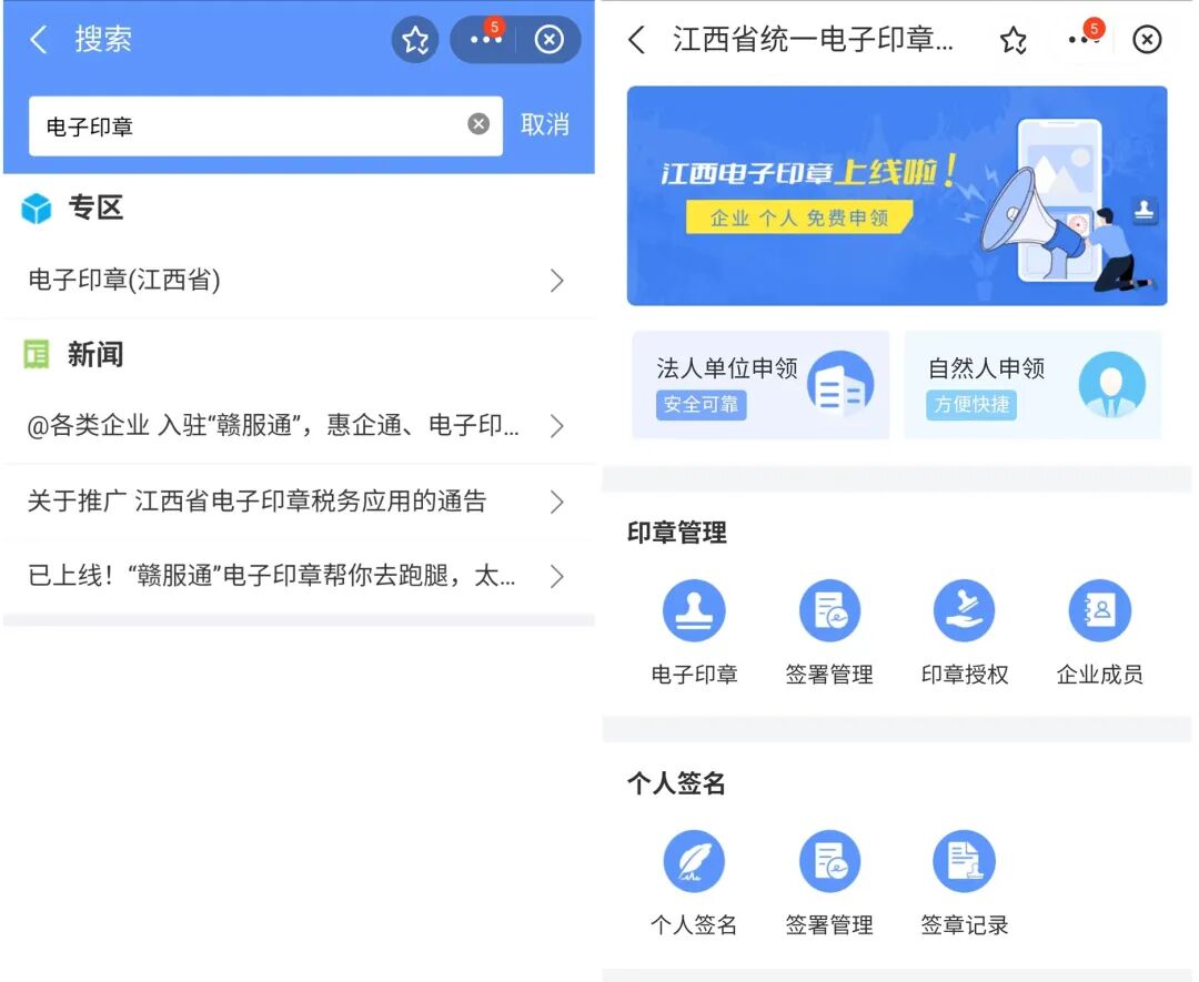 6.在赣服通首页搜索电子印章,选择法人单位申领