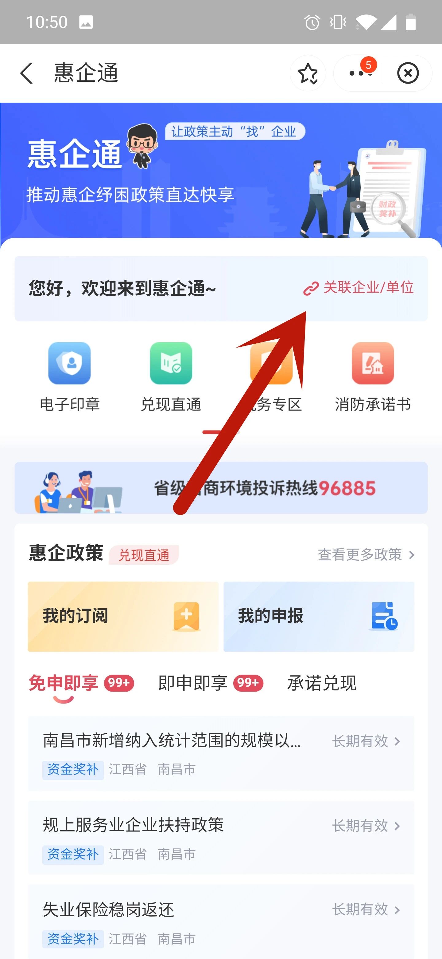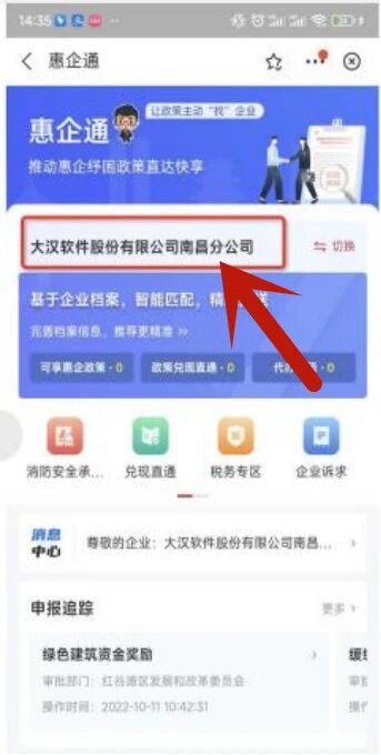 5.法人认证成功后,进入”惠企通“显示企业/单位名称才算完成所有注册程序