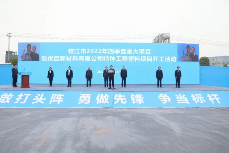 市委副书记、市长黄芳帅对项目的集中开工表示热烈祝贺,他指出,当前,枝江已基本形成了以三宁化工、广州天赐、湖北联昌等为代表的新材料产业集群。优巨新材料特种工程塑料项目的建成,将进一步促进枝江新材料产业优势聚集、串珠成链,提升产业基础高级化和产业链现代化水平,为加快建设“四个枝江”提供有力支撑。市委市政府将以最大的诚意、尽最大的努力、用最优的服务,为项目建设保驾护航,推动项目早竣工、早投产、早见效。