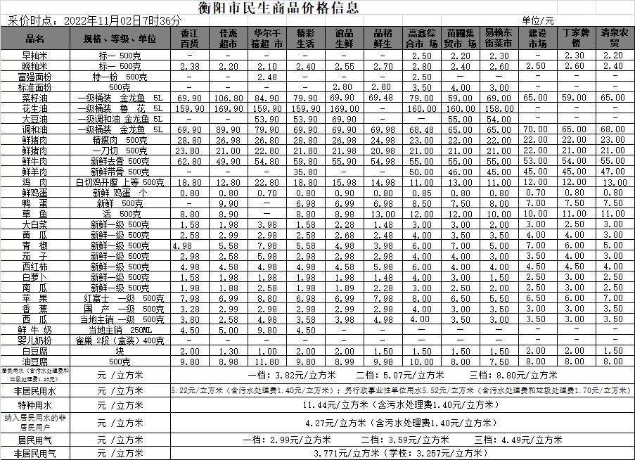 【物价】 2022-11-2衡阳市民生价格信息