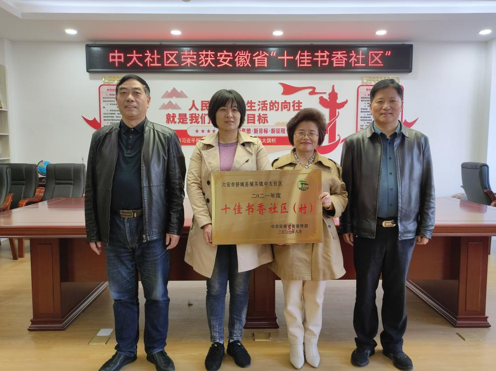 11月1日下午,县文旅体局、县图书馆来到中大社区,将奖牌颁发给社区负责人,要求社区利用好“十佳书香社区”的有利平台,进一步创新阅读活动,提升阅读质量,树立“爱读书、读好书、善读书”的文明风尚,扎实推进“书香安徽”建设。