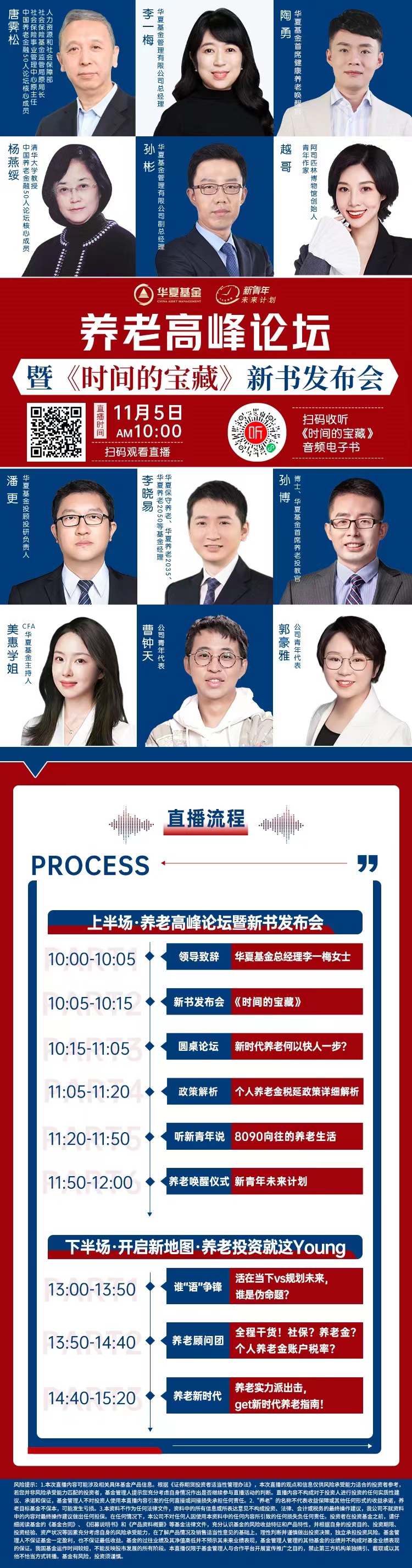 政策落地的次日,华夏基金即举办“新青年未来计划”养老高峰论坛。论坛邀请了来自养老、医疗、投资等不同领域的专家学者、青年代表,立足我国社会发生的新变化,聚焦“品质养老”“养老新政”“养老投资”等话题,以圆桌论坛、政策解读、听新青年说等形式,与广大投资者沟通,探索如何做好养老财富规划。