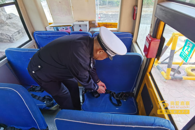 在检查中,检查组对校车驾驶人的资质、校车标牌、运行时间、行驶路线等情况进行逐一核对,检查校车手续是否齐全、是否符合安全运行条件、是否年检以及车辆的维护保养等情况,并重点检查了安全带、逃生锤、灭火器等安全设备情况。