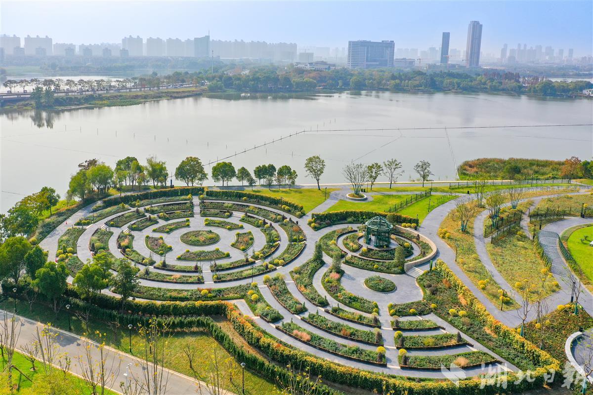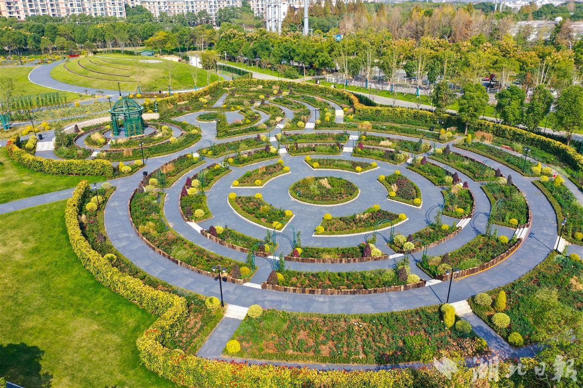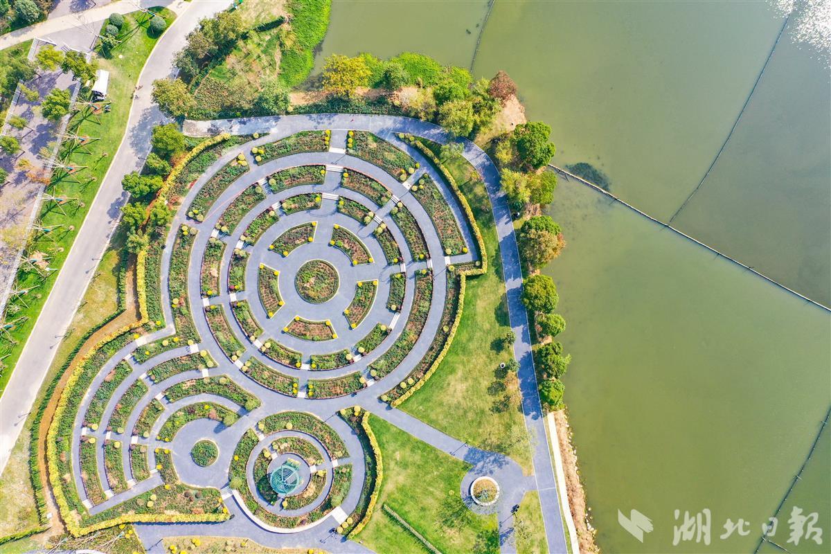 11月7日,空中俯瞰新建成的武汉市东西湖区金银湖月季花园。据介绍,金银湖月季园建设面积超11万平方米,是目前武汉市最大的月季专类花园。花园以月季为主题花卉,共有190多个植物品种,其中月季有108个品种,不同花形及花色的品种搭配,同时还设置有月季展示区、休闲活动区、水景游玩区 、花卉售卖区。目前月季园暂时处于休园养护期,明年春季月季盛开,市民游客置身其中可沉浸式体验游览五彩缤纷的月季花海。