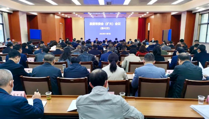 11月7日,县委书记李代斌主持召开县委常委会(扩大)会议,深入学习贯彻党的二十大精神和习近平总书记重要讲话精神,总结分析前三季度经济社会运行情况,研究部署当前工作,进一步动员全县上下凝心聚力、扛牢责任、全力冲刺,确保高质量完成全年各项目标任务。全体在县的县级领导,县委、县政府各部门、直属机构,各群团主要负责人、各镇(街道)党(工)委负责人参加了会议。