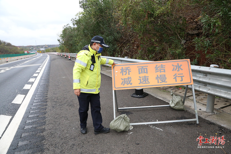 据天气预报,强寒潮今晚正式登陆衡阳,虽然不会出现持续性的冰冻天气,但部分山区、高海拔高速公路及长坡路段、迎风口桥梁路面仍有履冰风险,且处于路面履冰的临界点,将对高速公路通行安全带来不利影响。
