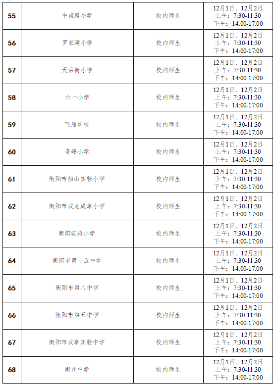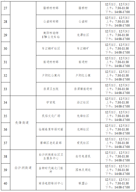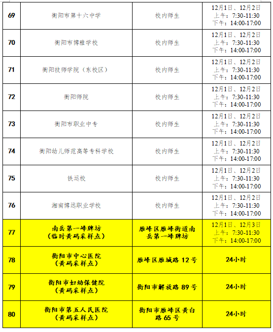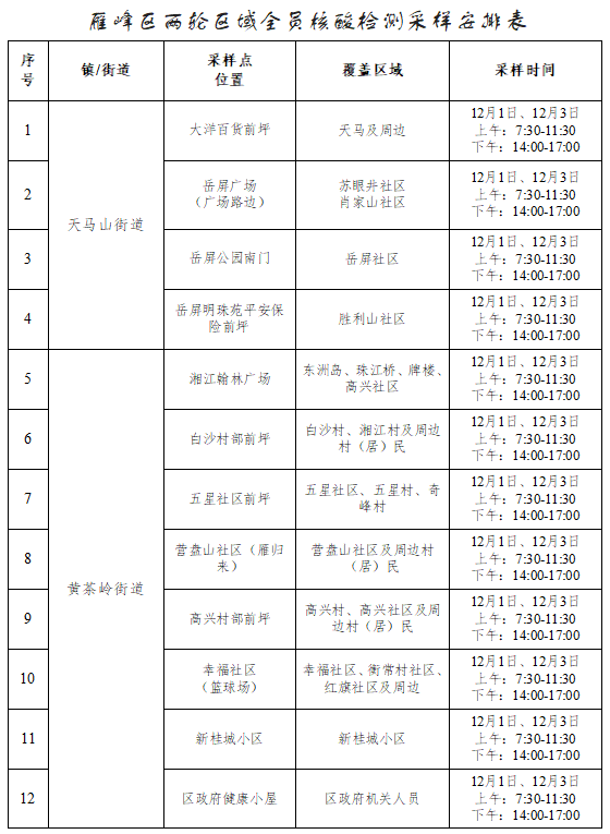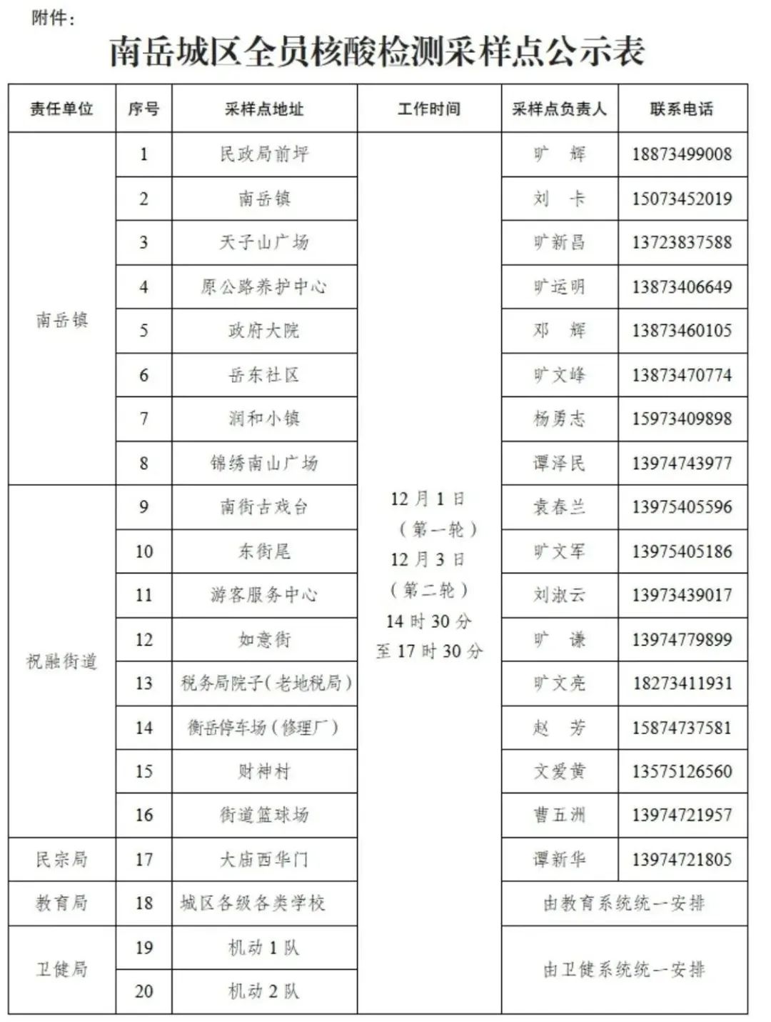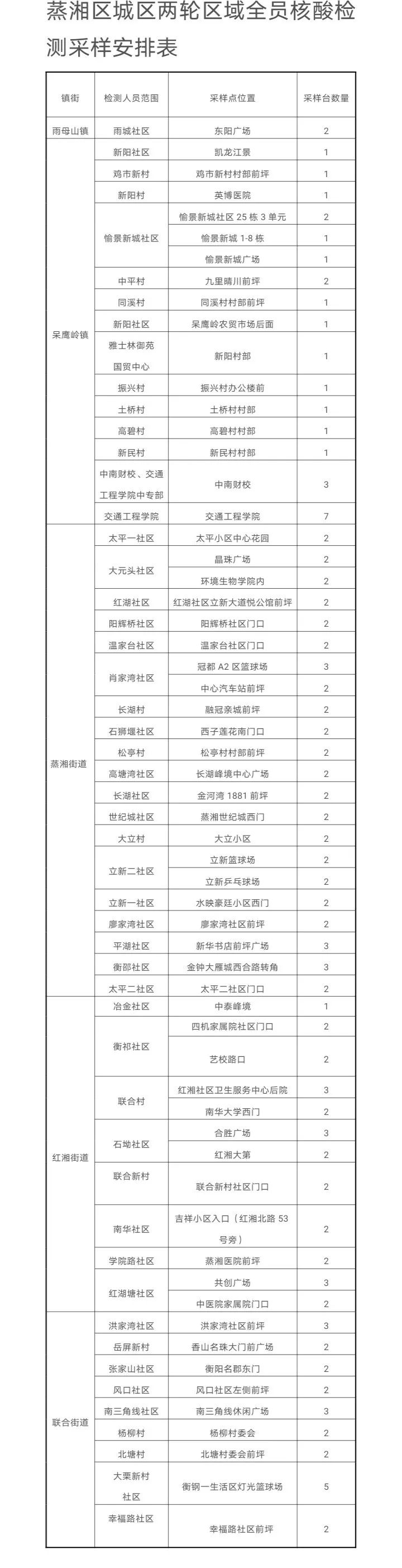 雁峰区、石鼓区、蒸湘区、高新区、南岳区公布核酸检测采样点