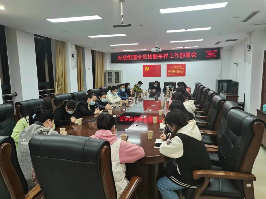 当前,我县疫情防控形势愈发严峻复杂,为进一步切实保障人民群众生命安全和身体健康,县疫情防控指挥部紧急安排在县城新老城区开展区域核酸检测工作。天岳街道办事处第一时间响应,在11月26日晚紧急召开天岳街道全员核酸采样工作部署会,对街道范围内各村(社区)全员核酸采样工作进行全面安排,明确分工,压实责任,确保快速、高效、安全推进全员核酸采样工作,为天岳街道居民筑牢疫情防控的坚实防线。