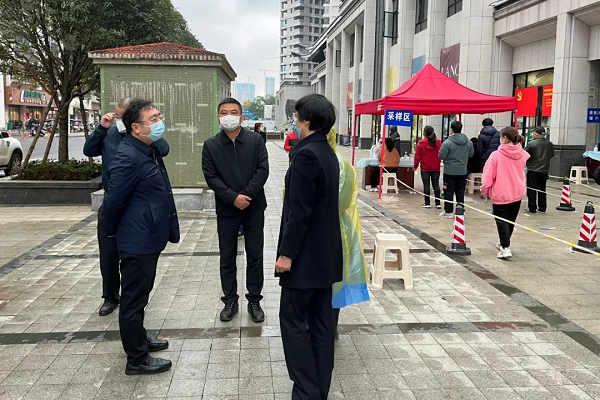 11月29日下午,雁峰区委副书记、区长谢韬率队赴湘江翰林广场、营盘山社区督导检查疫情防控和区域全员核酸检测工作,并看望慰问持续奋战在防疫一线的工作人员和志愿者。