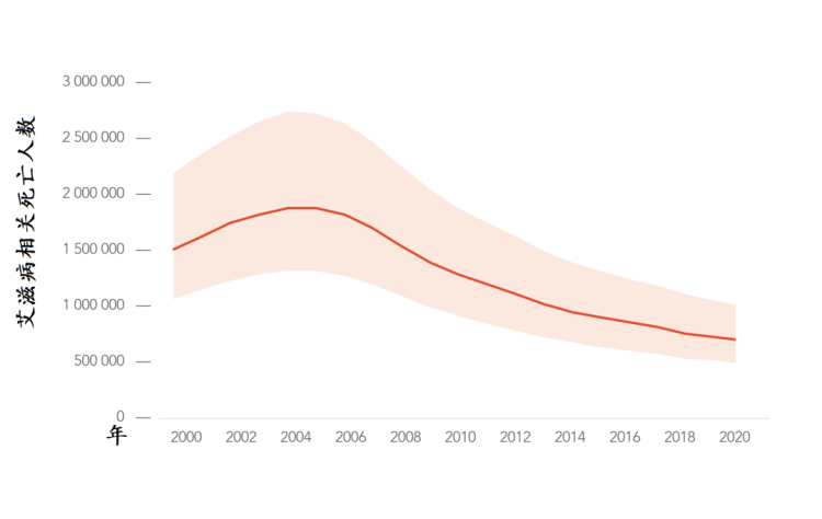 ▲2000–2020年全球艾滋病相关死亡数变化趋势