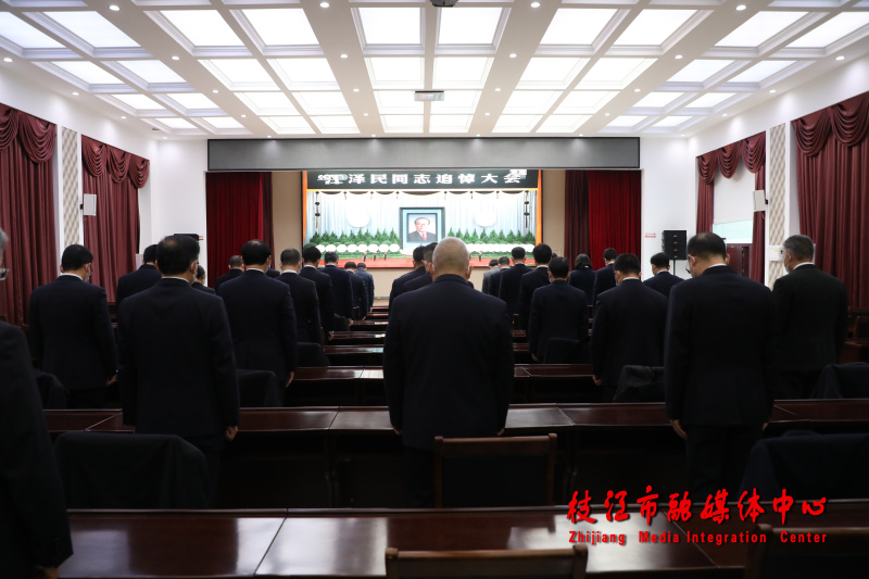 枝江融媒(记者 谢逸舟 方伟)12月6日上午10点,江泽民同志追悼大会在北京人民大会堂隆重举行。余峰、黄芳帅等全体市领导在枝江集中收看追悼大会现场直播,沉痛哀悼、深切缅怀江泽民同志。