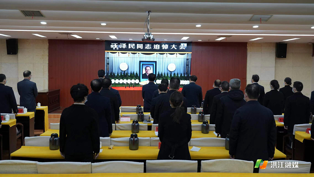 在会议中心电视电话会议室,郑小胡、向胜科、谢景良、曾勤、钦黄有、黄涌、邱琳、吴晖、张永红、贾从敬等市领导庄严肃穆、默然肃立,怀着沉痛的心情,集中收看收听追悼大会,缅怀江泽民同志丰功伟绩和光辉业绩。
