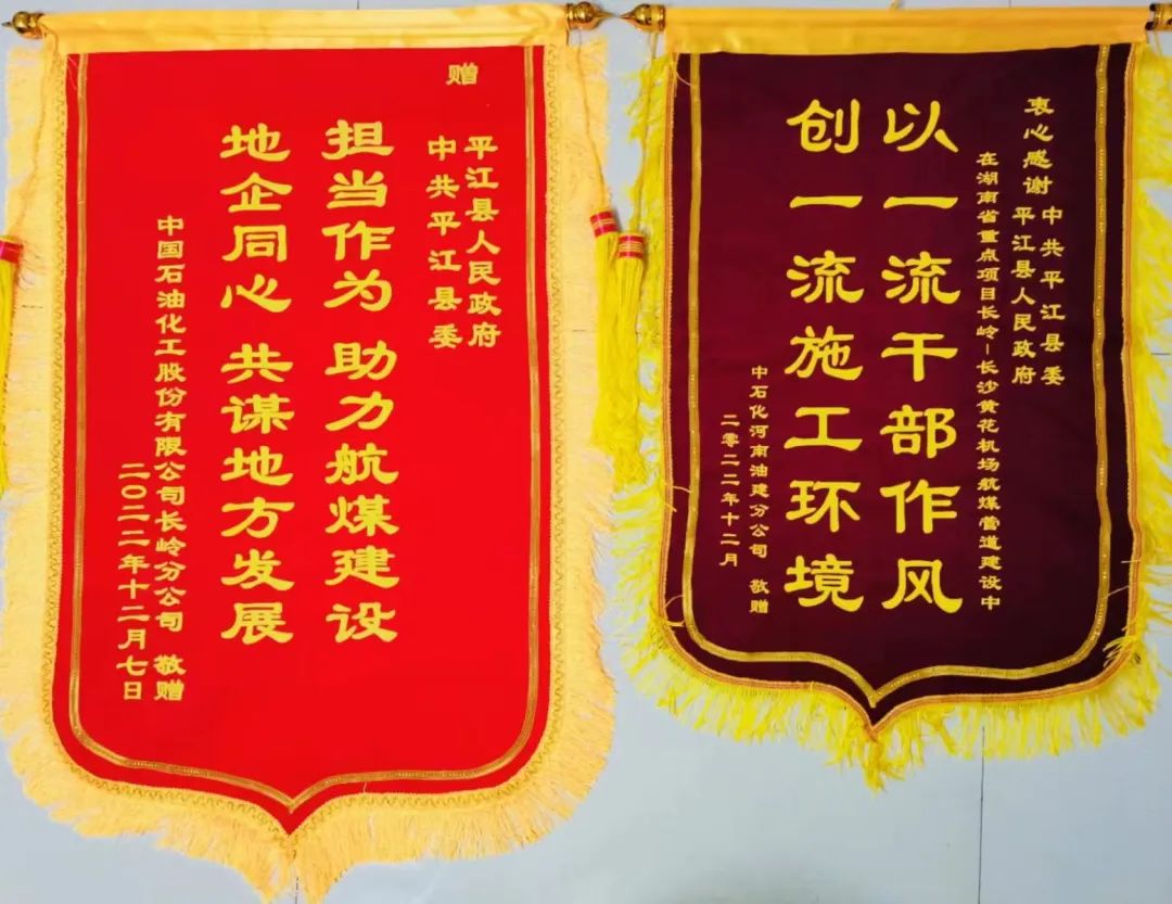 航煤管道项目给县委县政府赠送的锦旗