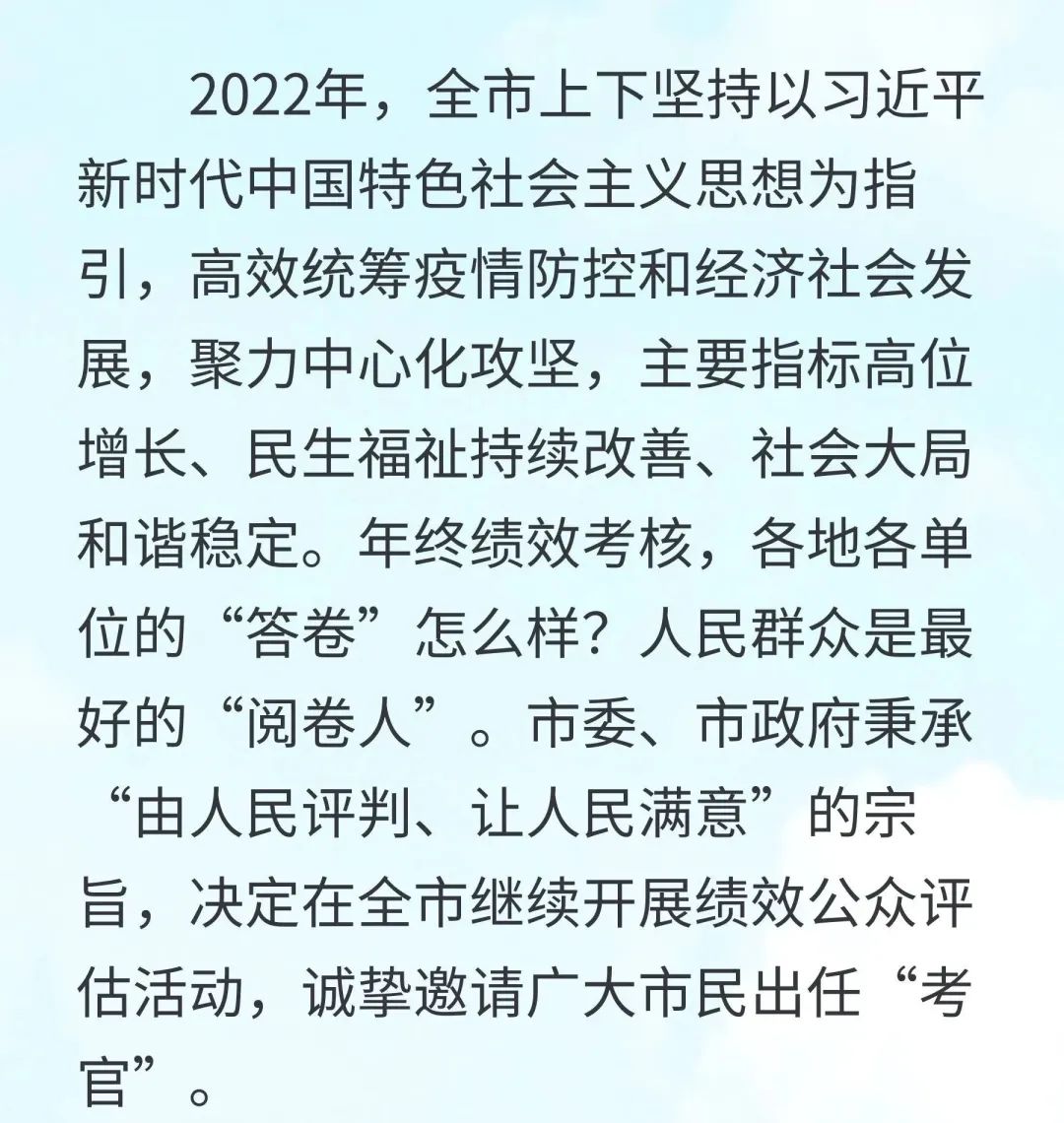 2022年度绩效考核公众评估——致全市人民的一封信