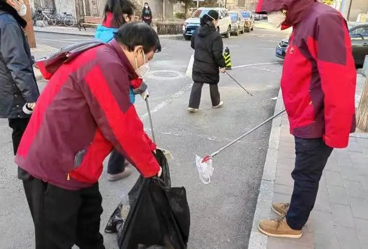 各社区的工作人员、志愿者、党员群众、物业保洁们,冒着凛冽的寒风手拿扫帚和簸箕,沿路逐一清理,对路面、绿化带、人行道等区域的垃圾袋、纸屑、烟头进行清理打扫,让社区的卫生环境焕然一新。