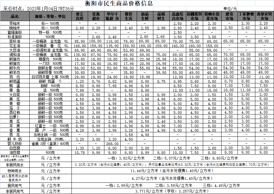 【物价】 2023-1-4衡阳市民生价格信息