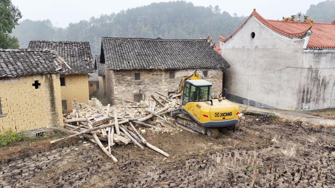 在杨梅山镇香花村,正在对一栋1000多平方米的危旧房屋进行拆除。张润槐来到整治现场,实地督导整治行动开展。