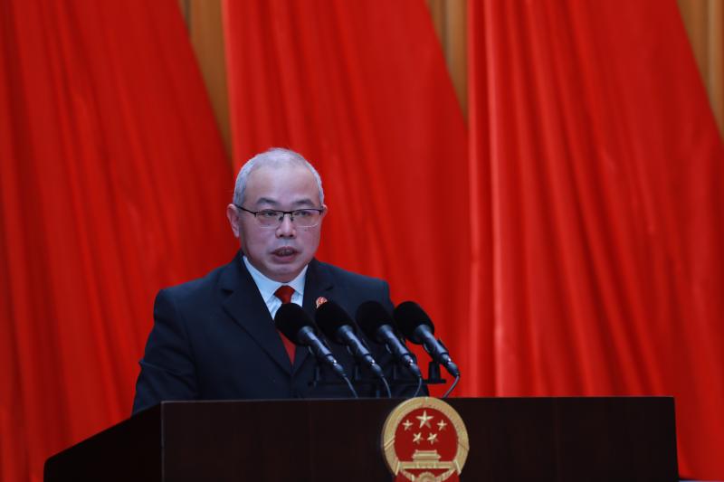 区人民法院副院长谢一鸣代表区人民法院向大会报告工作。