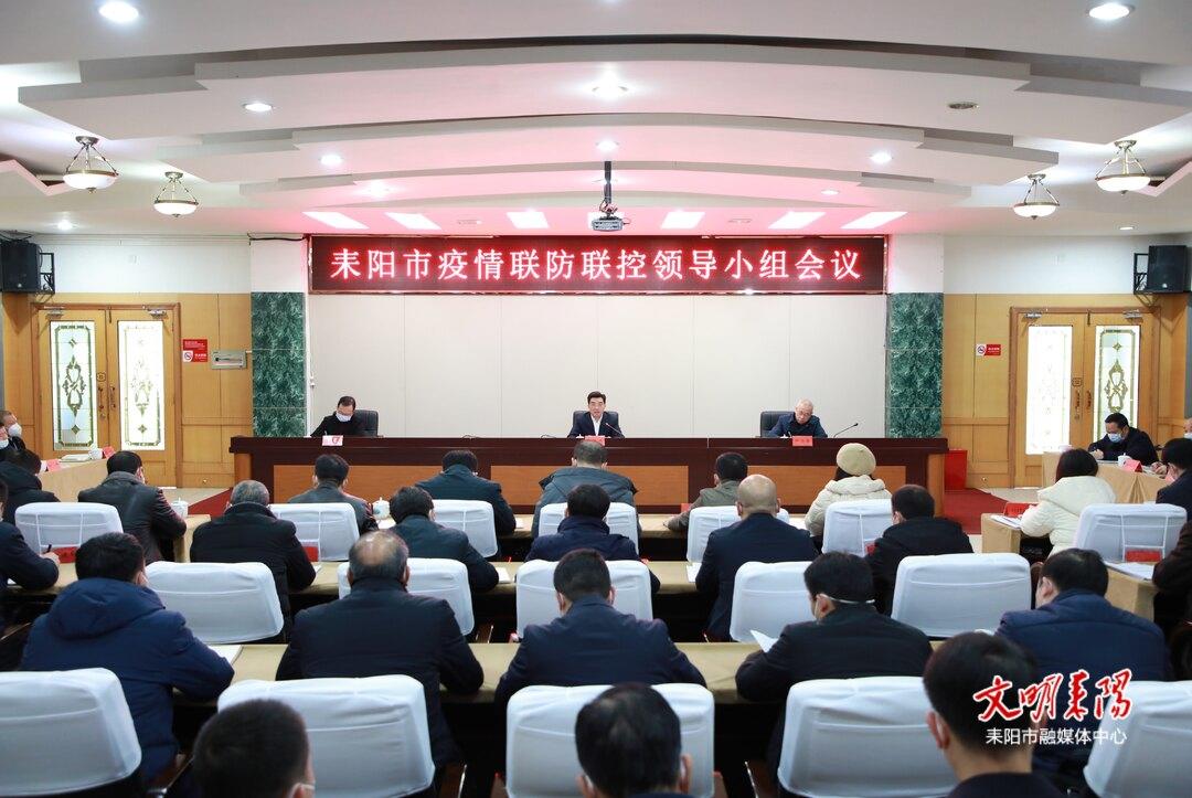1月4日上午,耒阳市召开疫情联防联控领导小组会议,传达贯彻上级有关会议文件精神,安排下阶段疫情防控工作。衡阳市委副书记、耒阳市委书记赖馨正强调,要深入学习贯彻习近平总书记关于疫情防控工作的重要指示批示精神,认真落实党中央决策部署和省委、衡阳市委工作要求,坚持人民至上、生命至上,统一思想、统一行动,扎实做好新阶段疫情防控工作,最大程度保护人民群众生命安全和身体健康,最大限度减少疫情对经济社会发展的影响。市委副书记、市长尹立鑫主持会议。