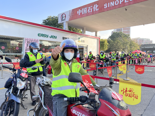 1月7日,正值2023年春运启动首日,中国石化“情暖驿站”大型春节关爱公益活动正式启动。这是中国石化自2013年以来连续第11年开展此项爱心公益活动,为春运期间摩骑返乡务工人员、跨省运输卡车司机提供免费加油、休息等服务。