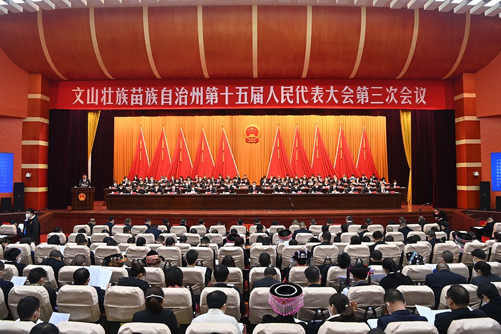 1月7日上午,文山州第十五届人民代表大会第三次会议在文山会务中心报告大厅开幕。