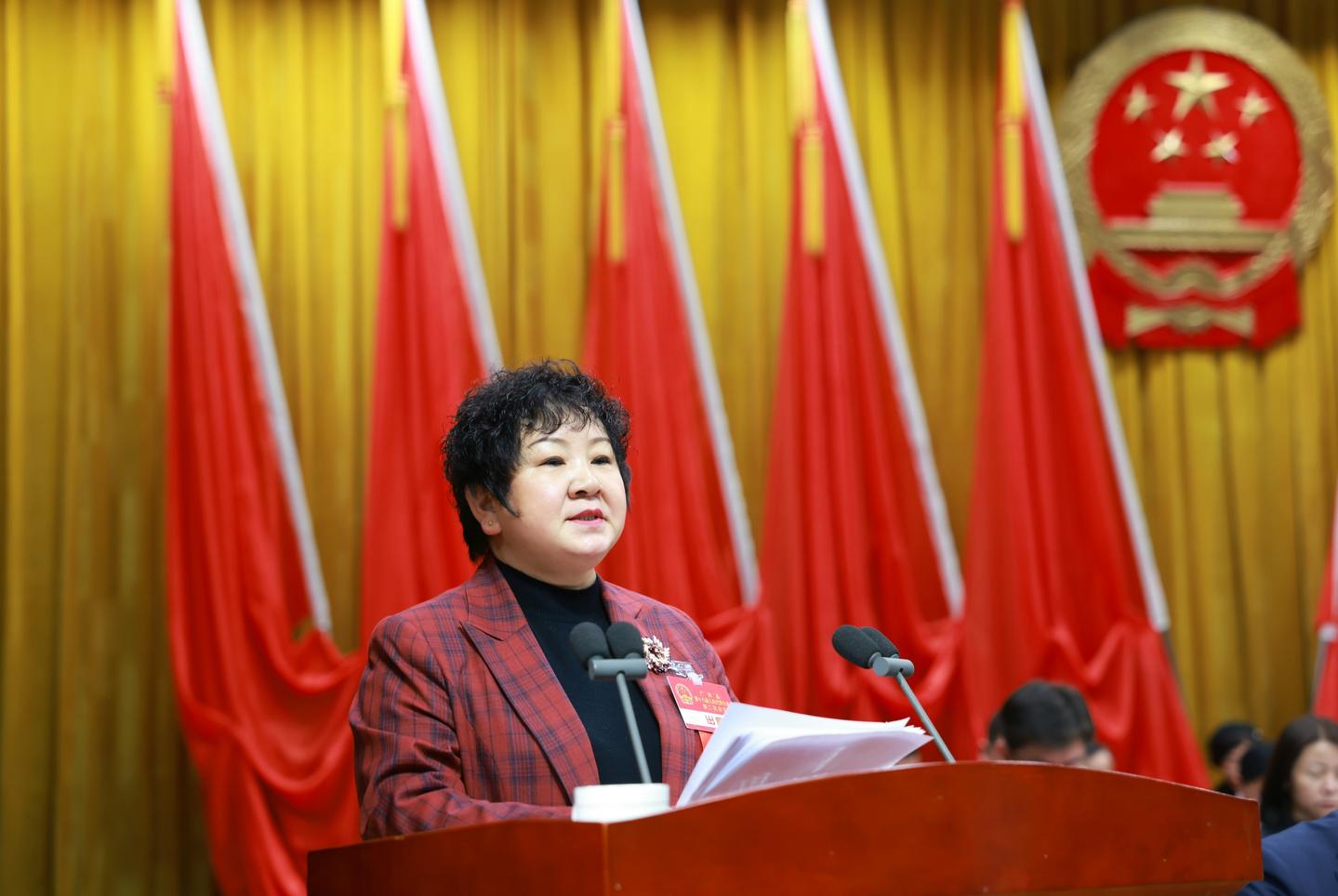 受县人大常委会委托,张文梅向大会作县人大常委会工作报告。