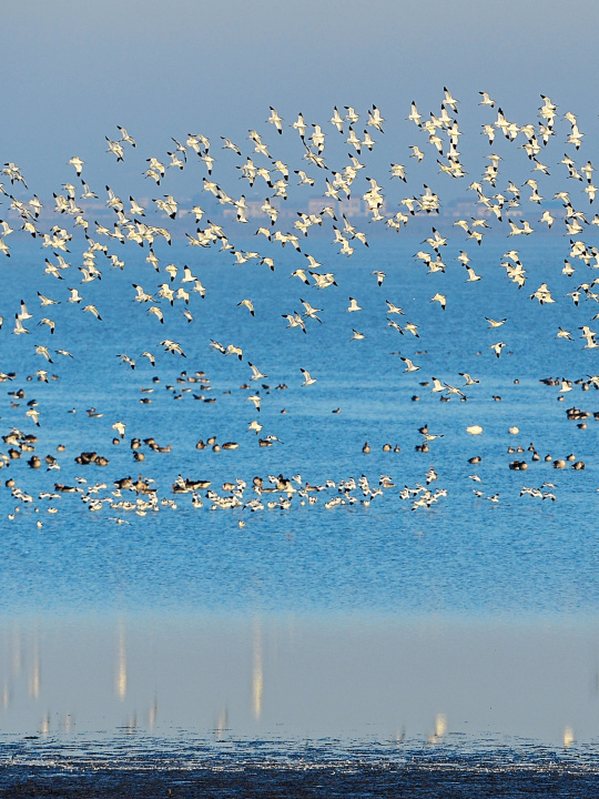在武汉沉湖国际重要湿地自然保护区,万鸟齐翱翔。长江日报记者史伟 摄
