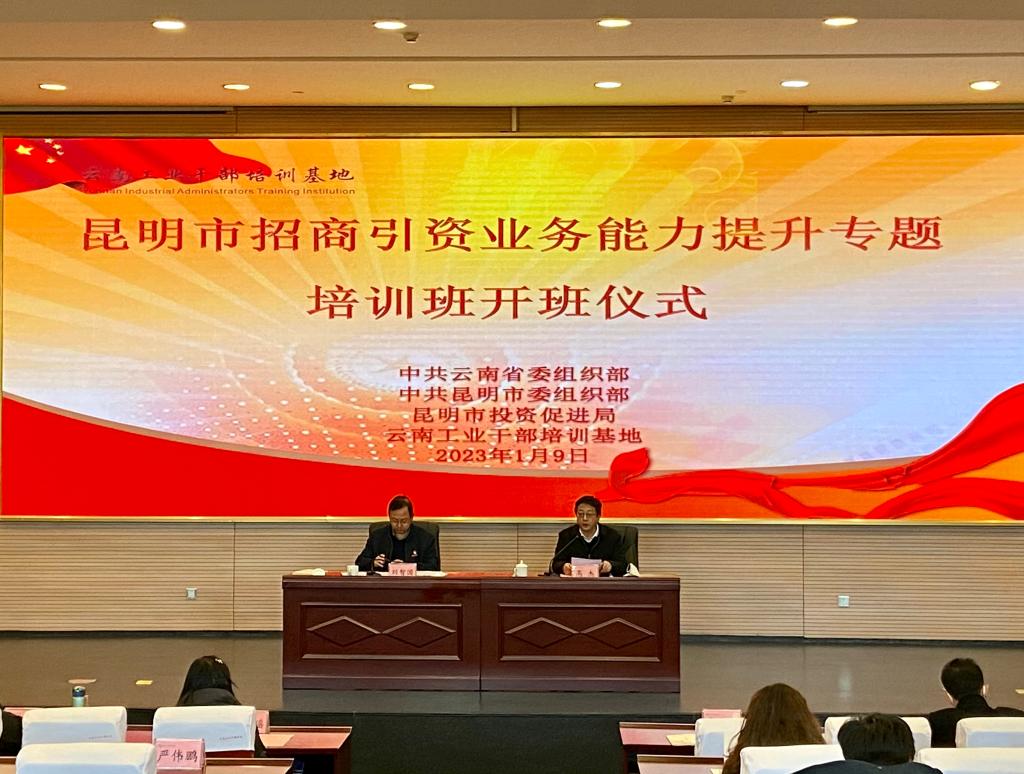 本次培训由中共云南省委组织部主办,中共昆明市委组织部和昆明市投资促进局承办,云南工业干部培训基地负责具体实施。