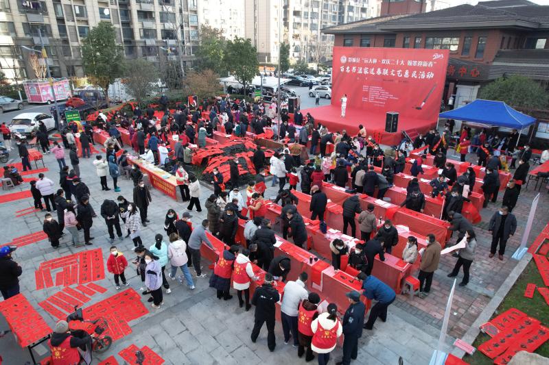 县委常委、副县长薛潇宣传活动开始。百名书法家铺红纸、调笔墨、即席挥毫,倾情书写文化“年货”。一副副寓意着喜庆、吉祥的对联,一个个充满年味的“福”字,在他们笔下一挥而就,引得现场群众赞不绝口,大家纷纷挑选自己喜爱的春联和福字,脸上无不洋溢着幸福的笑容。