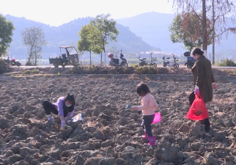 一边是村民采挖农作忙,一边是孩童嬉闹亲子乐,宽袤的田野,不少家长也带着小朋友过来体验农耕,亲近大自然。他们自带小铲子,在村民采挖收获后的田里捡拾小马蹄,体验着“寻宝”的乐趣。