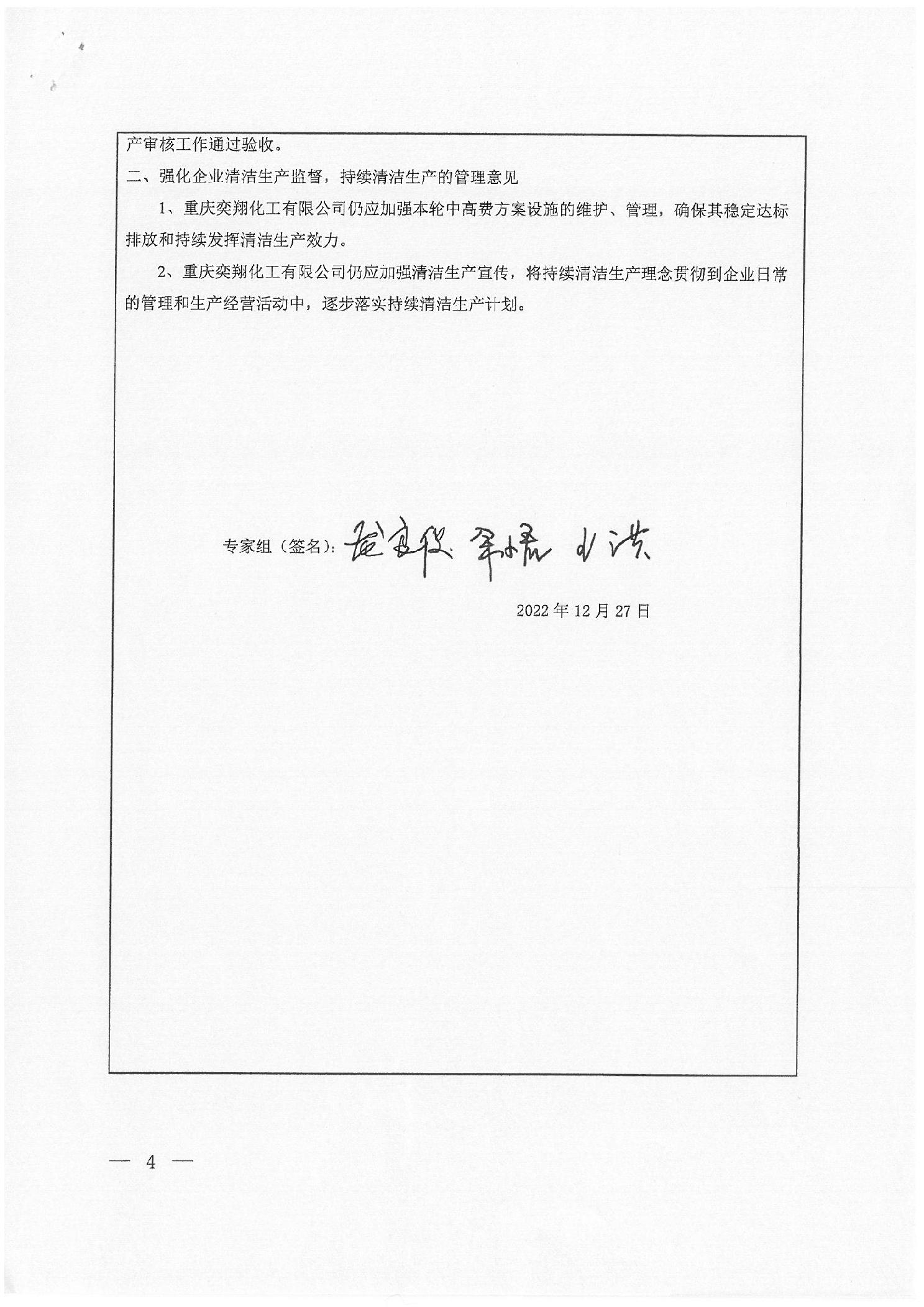 清洁生产审核验收意见表(重庆奕翔化工有限公司)