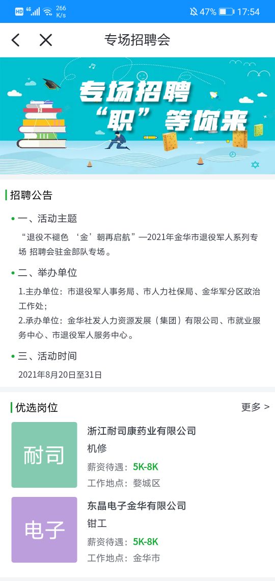 3.点击首页“2021年金华市退役军人系列专场招聘会驻金部队专场”