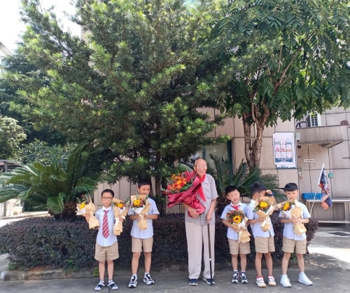 张老嘱咐小学生们:要始终热爱和拥护中国共产党,学生是国家的未来,心要红、心要正;要始终热爱学习,强健体魄,争做红色接班人。