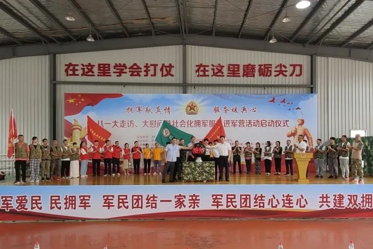 近日,永康市退役军人事务局联合武警金华支队机动二中队举行了以“拥军献真情,服务暖兵心”为主题的八一大走访、大慰问暨社会化拥军服务进军营活动启动仪式。永康市退役军人事务局党组书记、局长李贵江,市司法局局长、民革永康市基层委员会主委马雄英,市关爱退役军人协会、市爱国拥军促进会市一二一公益协会、市西城街道玖玖社会组织服务中心等社会组织,浙江易尚工贸有限公司、浙江包氏铸造有限公司永康方大瑞金医院等爱心企业,部分驻永官兵代表、老兵代表,其他志愿者及社会各界爱心人士,共计150多人参加了启动仪式。