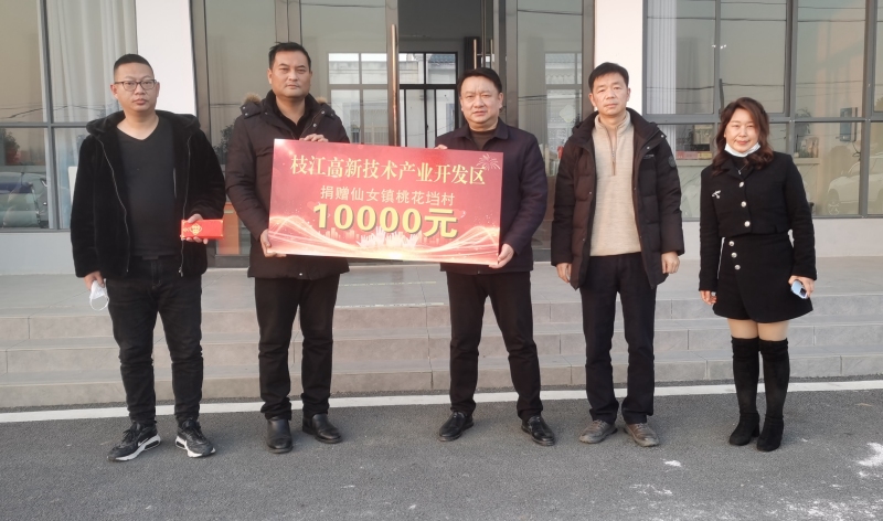 枝江高新技术产业开发区先后为仙女镇桃花垱村筹集帮扶资金6万元,项目资金10万元,生产肥料2吨。在开展迎新春送温暖活动中,枝江高新技术产业开发区又为桃花垱村困难群众送去慰问资金10000元。