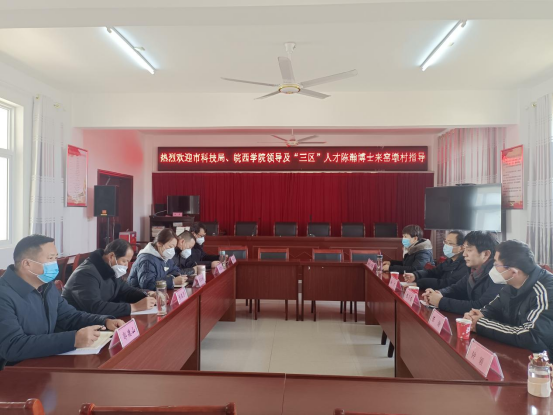 为促进农业科技成果转化应用和农村先进适用技术示范推广,为本地人才队伍建设、富民产业培育、农业提质增效和乡村振兴提供有力的智力服务和科技支撑,1月4日,六安市科技局党组成员徐广、皖西学院生工学院副院长陈乃东陪同“三区”人才——陈瀚博士一行到棠树乡窑墩村开展结对服务活动。县科技局副局长胡道凤,棠树乡分管同志、科技联络员,窑墩村驻村书记参加座谈会。