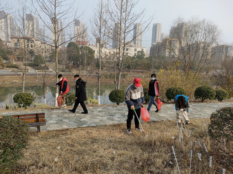 志愿者们分工协作,手拿扫把、簸箕、夹子等清洁工具对四季港公园和北宸小区周边进行“地毯式”清理,一片热火朝天的劳动场景。