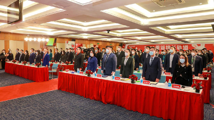 会议伊始,徐建成董事长、李仙霖总裁和全体与会高管共同唱响国歌,并通过《集团年度大事记》回顾片,重温了绿叶2022年各板块全员冲到一线服务加盟商和消费者,绿叶超市、绿叶电商等业务逆势增长、成果丰硕的一幕幕画面。