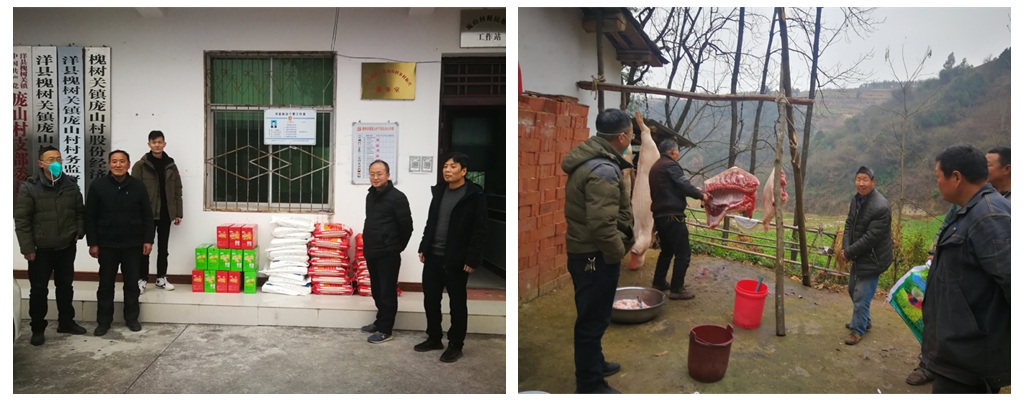 1月12日,洋县创建办组织帮扶干部到槐树关镇庞山村开展消费帮扶和春节慰问活动。在走访慰问中,大家与帮扶户促膝交谈,详细询问他们的身体健康状况、生活情况及春节准备情况,并为帮扶群众送去了米、面、油等生活物资。在2组村民庞红娃家中,2头大肥猪已挂在肉架上。“我来5斤”“我来10斤”“给我也来5斤”大家纷纷加入抢购行列,猪肉很快被抢购一空。“太谢谢你们了,多亏了村上、工作队和你们,解决了大问题。”一旁的庞红娃高兴地说。随后,帮扶队员在群众家中纷纷购买了土鸡、黄豆、红薯等农产品,个个满载而归。